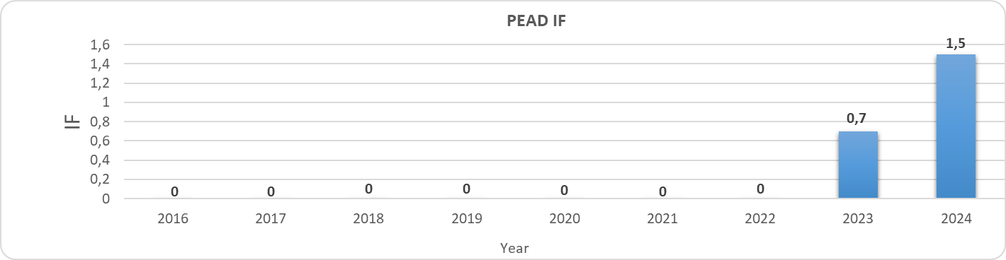 Impact Factor (IF) is equal to 1.5. Its changes are shown below: